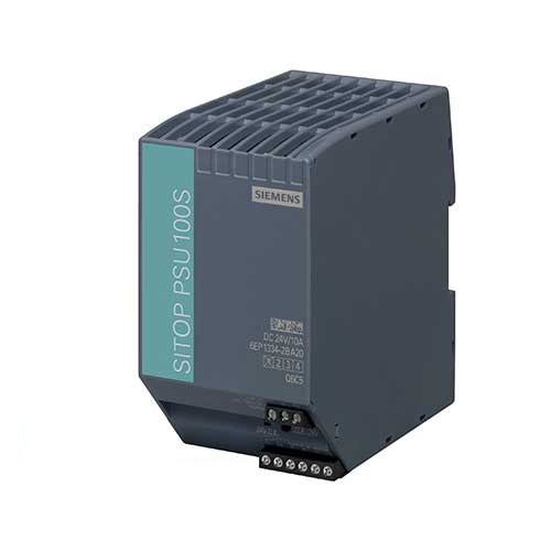منبع تغذیه 24 ولت 10 آمپر تکفاز زیمنس SITOP PSU100S ، یک منبع تغذیه تک فاز با خروجی 24 ولت DC و جریان خروجی 10 آمپر، برق ورودی 120 ولت و 230 را پشتیبانی می کند و علیرغم طراحی جمع و جور، پاسخ اضافه بار فوق العاده ای را ارائه می دهد.