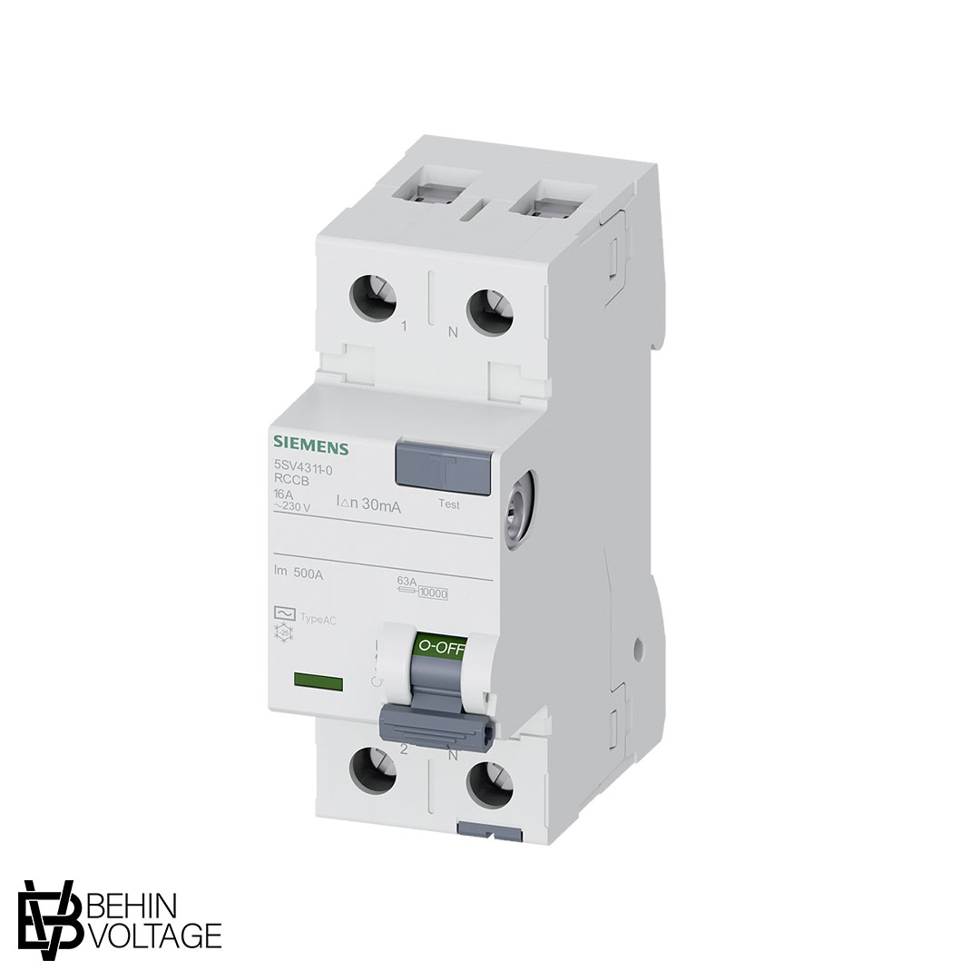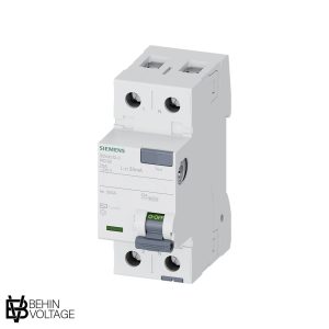 کلید محافظ جان سری 5SV زیمنس، ولتاژ 230VAC/50Hz، دو پل، 16 آمپر، جریان تشخیص خطای 30mA